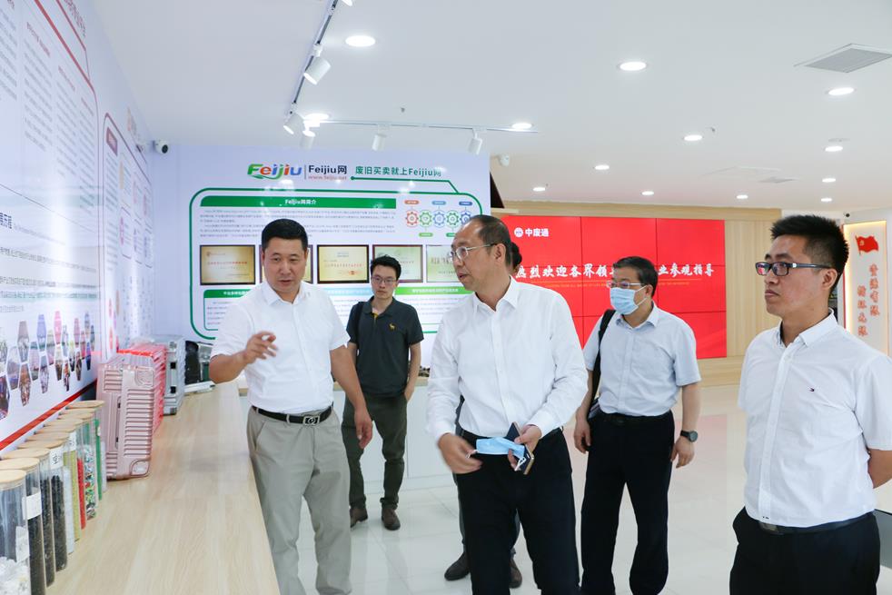 6月17日下午,河北省商务厅副厅长卢建、石家庄市商务局副局长赵磊、石家庄市商务局电子商务与信息化处处长刘豹等省、市商务部门领导一行莅临河北中废通,就电子商务发展情况进行实地调研,河北中废通网络技术有限公司董事长李君彦代表公司陪同。