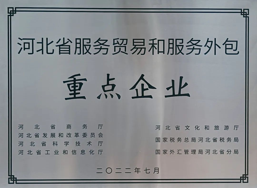 河北中废通网络技术有限公司凭借服务范围广,市场潜力大,在省内采用的技术及运营模式领先等优势,通过申报荣获《河北省服务贸易和服务外包重点企业》称号。
